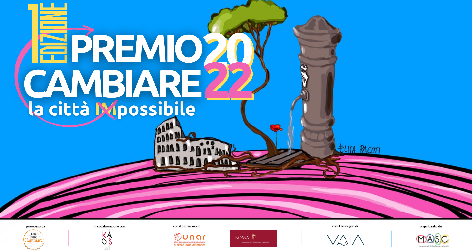 Il Premio Cambiare nasce su iniziativa dall’Associazione Dire Fare Cambiare con il patrocinio dell’U.N.A.R. (Ufficio Nazionale Antidiscriminazioni Razziali della Presidenza del Consiglio dei Ministri) e dell’Assessorato alle Politiche Sociali del Comune di Roma, ed è realizzato in collaborazione con Kaos Kult, con il sostegno di VAIA, startup nata per dire vita agli alberi abbattuti dall’omonima tempesta e ricostruire le foreste delle Dolomiti.
