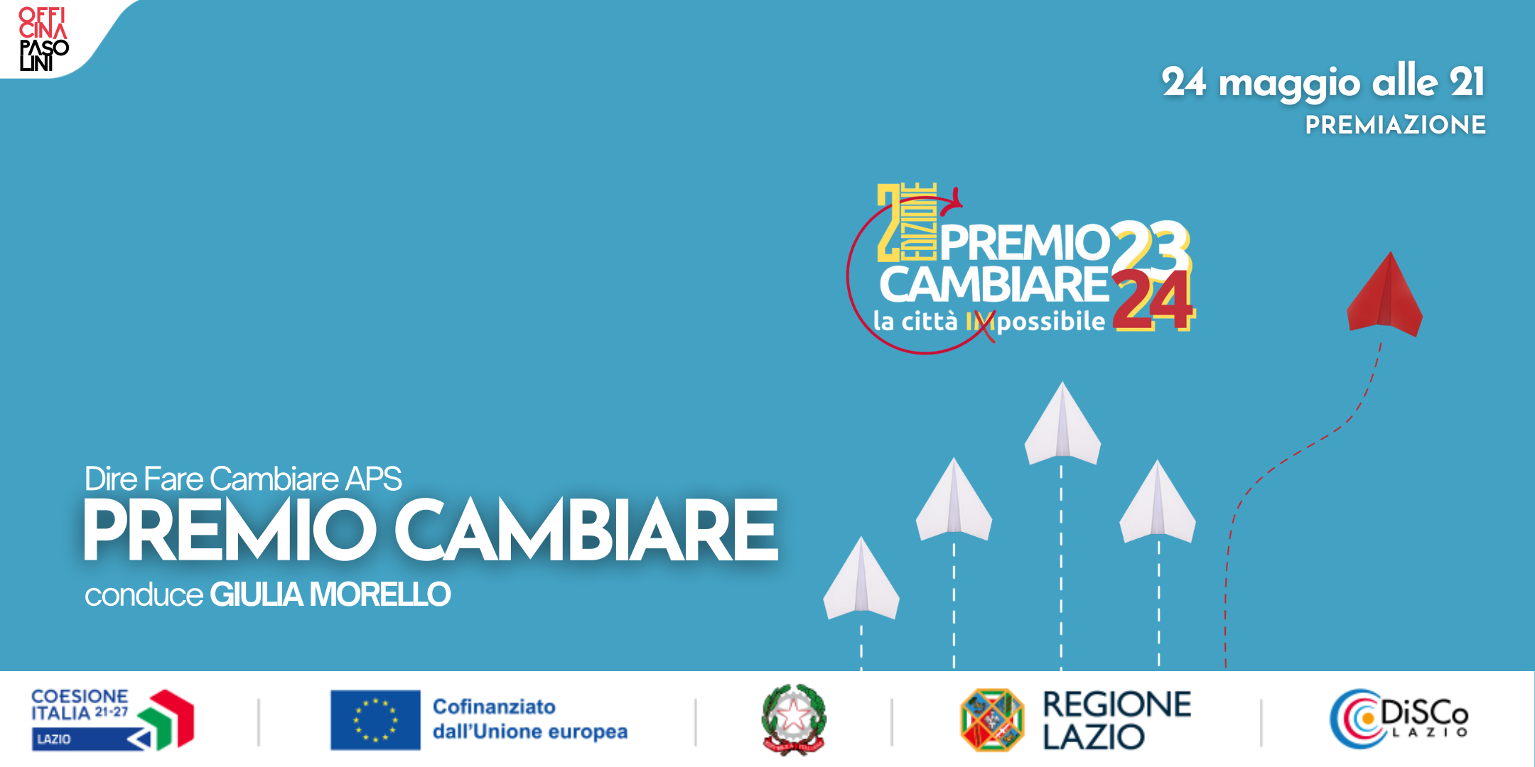 Il Premio Cambiare nasce nel 2022 ed è ideato e promosso dell’Associazione Dire Fare Cambiare con il patrocinio dell’U.N.A.R. (Ufficio Nazionale Antidiscriminazioni Razziali della Presidenza del Consiglio dei Ministri) e dell’Assessorato alle Politiche Sociali e alla Salute di Roma Capitale per offrire un riconoscimento alle buone pratiche della città di Roma da un punto di vista culturale, sociale e ambientale. Un Premio che nasce per offrire un riconoscimento a chi contribuisce a rendere la città di Roma più libera, aperta e inclusiva.